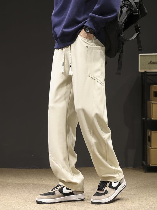 2024 New Spring Autumn Men's Sweatpants Multi-Pockets Wide Leg Casual Cargo Pan