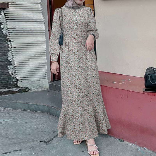 Women Floral Printed Muslim Dress Bohemian Sundress Elegant Abaya ZANZEA Fashio