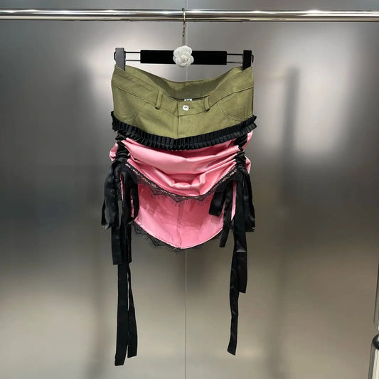 Yuerwang Women lace skirt 2023 Summer Patchwork Ribbon Drawstring Elastic Decor
