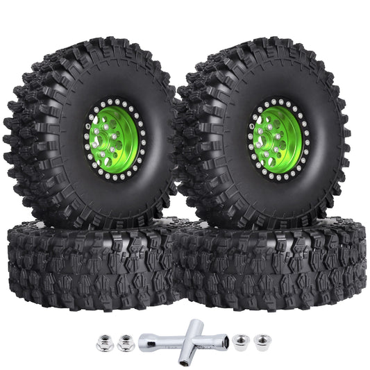 4pcs Hobbypark 1.9 Inch Beadlock Wheels and Tires Set for 1/10 Scale RC Crawler