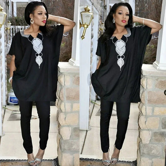 African Clothing For Women Dashiki Embroidery Design Soft Material Top And Pant