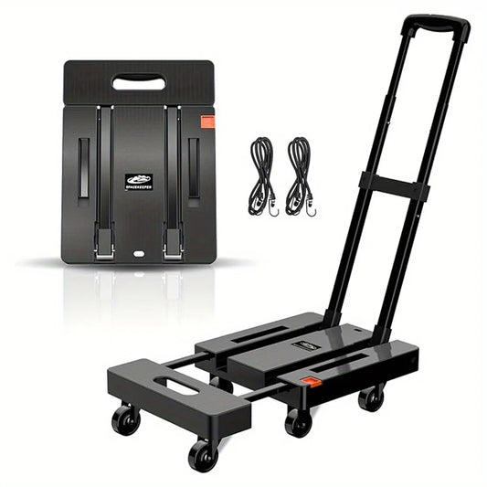 Folding Hand Truck, 500 LB Heavy Duty Luggage Cart, Utility Dolly Platform Cart with 6 Wheels & 2 Elastic Ropes for Luggage