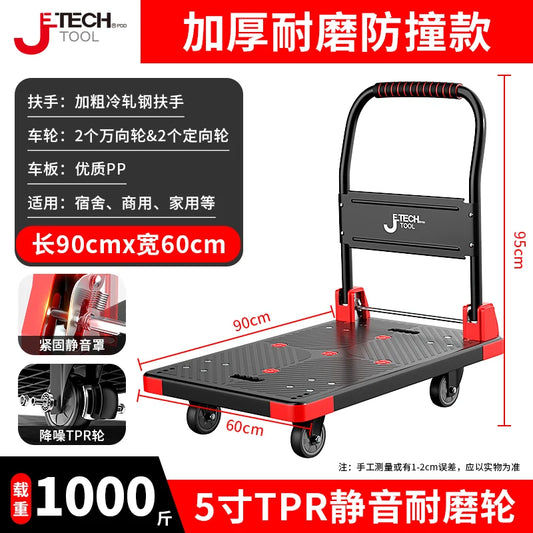 Heavy-Duty Flatbed Tool Cart - 1000lb Capacity, Locking Wheels & Steel Frame for Workshop/Garage