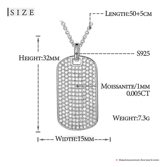 Square Minimalist Mini Iced Out Tag Pendant Necklace For Men Hip Hop Jewelry Moissanite Pendant Sterling Silver Square Pendnat