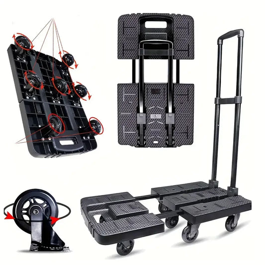 SELORSS Heavy-Duty Folding Hand Truck with 720lbs Capacity, 360°Rotate 7 Wheels, Extendable Large Base, Adjustable Handle