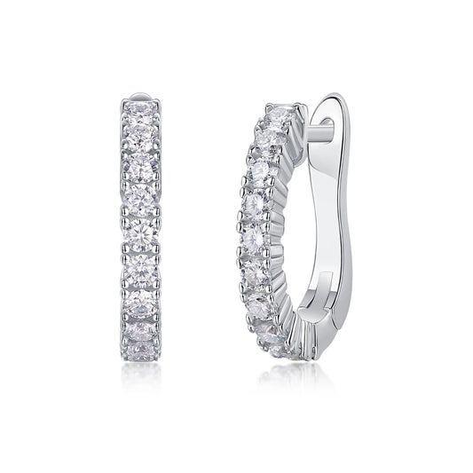 2pcs Moissanite Earrings 925 Sterling Silver 18K Gold Plated Round Hoop Pavé Design Elegant Jewelry Women GRA Certificate