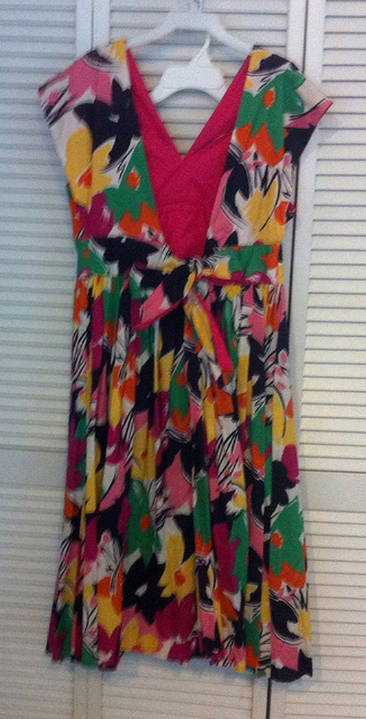 Victor Costa Women Dress Cotton Floral Multi-Color Print Size 10