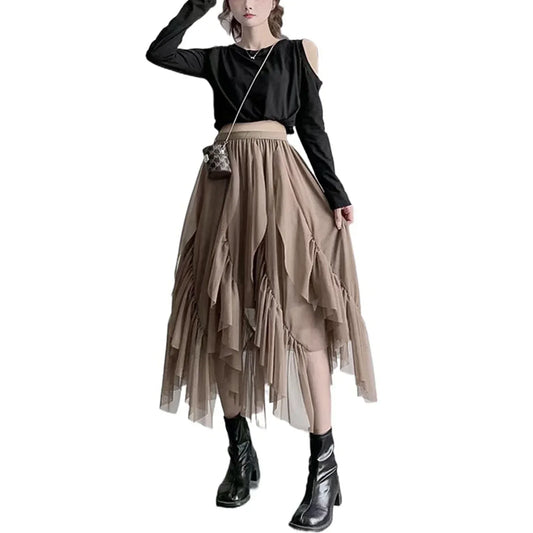 Formal O Neck Long Sleeve Ruffle Party Evening Gown Office Lady Dress
