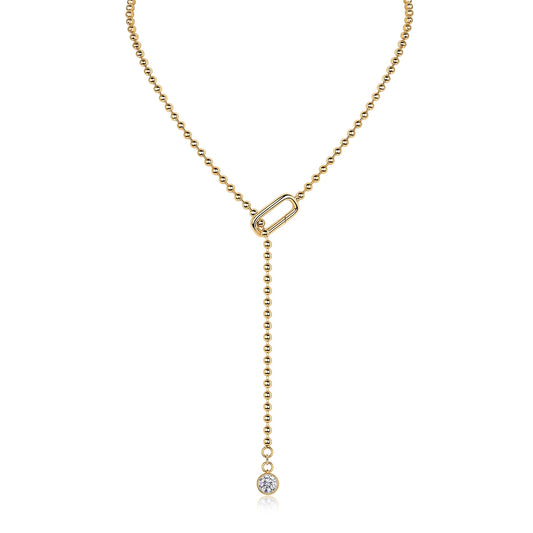 JIUZUAN Moissanite Y-Shape Necklace, S925 Silver, 18K Gold Plated, Elegant Jewelry for Women, Perfect Xmas Gift