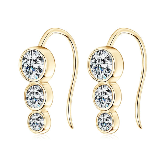 OXTAO U-shaped Ear Hook 925 Sterling Silver Round Cut Moissanite Earrings for Women 14k Gold Plated Wedding Jewelry Certified