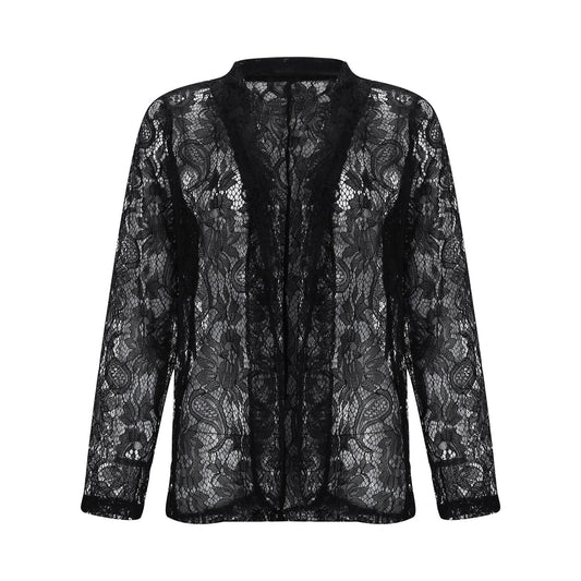White Lace Hollow Out Women's Suit Coat Solid Open Stitch Blazers Outdoor Forma