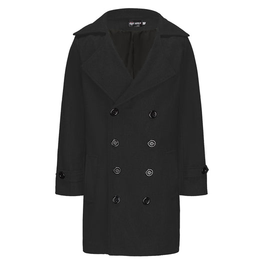 Classic Wool Blend Peacoat with Notched Lapel and Button Closure for Men s Wint