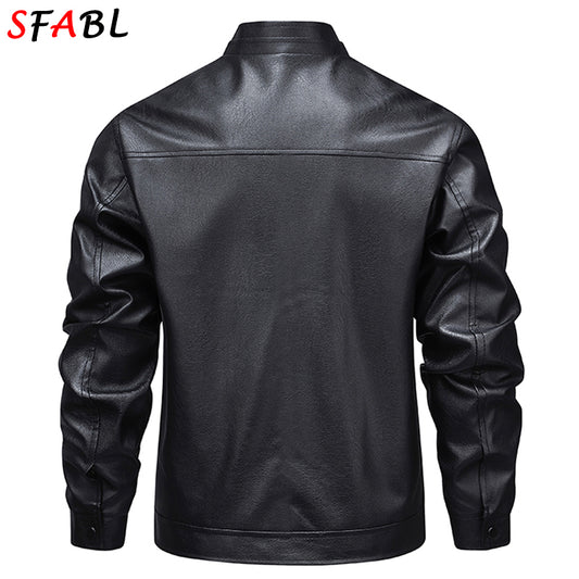 Autumn Winter Men's Motorcycle PU Leather Jacket Coat Biker New Fashion Leather