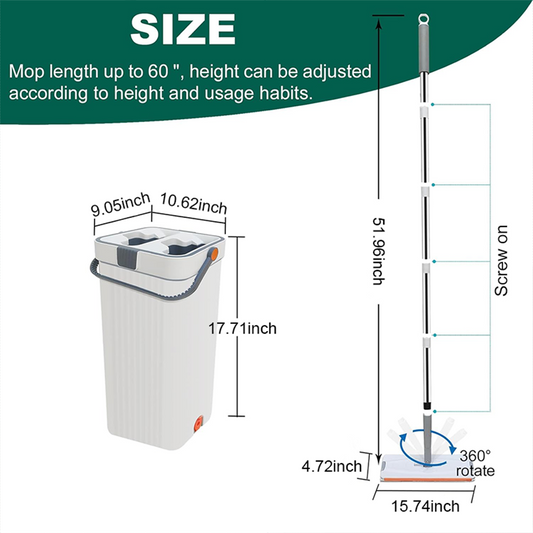 Mop and Bucket with Wringer Set for Home, Flat Mop and Bucket System for Floor
