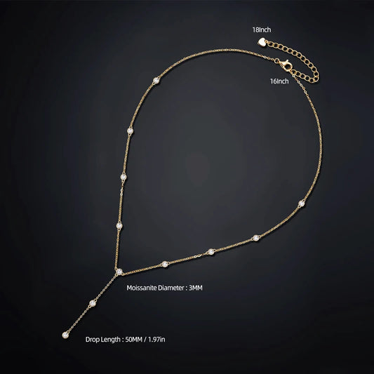OXTAO 3MM 1.1ct Round Cut Moissanite Necklaces Ladies S925 Silver Tassel Necklace Chain Sparkling Y-shaped Links Jewelry Gift