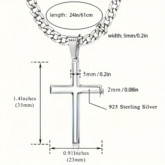 925 Sterling Silver Cross Necklace for Men Women Durable Cuban Crucifix Pendant Necklace Religious Jewelry Gift Ships from USA
