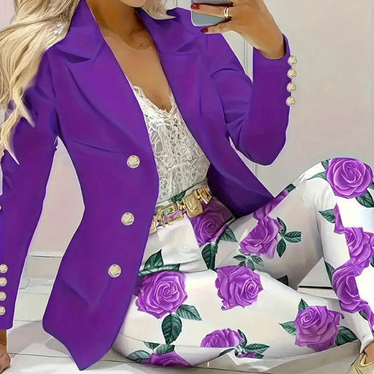 Chain printed leopard print casual two-piece set, double breasted lapel long sleeved suit jacket and high waisted casual pants