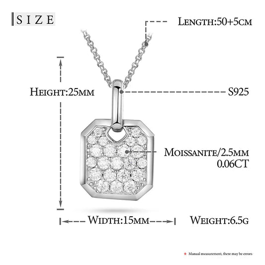Square Minimalist Mini Iced Out Tag Pendant Necklace For Men Hip Hop Jewelry Moissanite Pendant Sterling Silver Square Pendnat