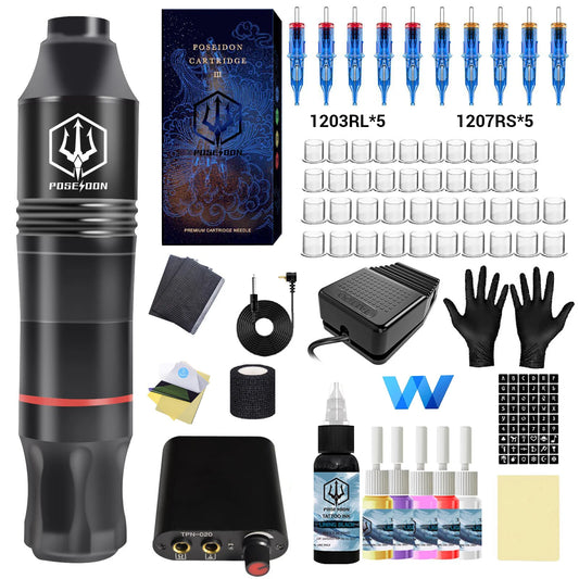 POSEIDON Tattoo Kit High Quality Tattoo Pen Kit For Permanent Makeup Tattoo Machine Kit 10PCS Tattoo Needle Black Tattoo Gun Kit
