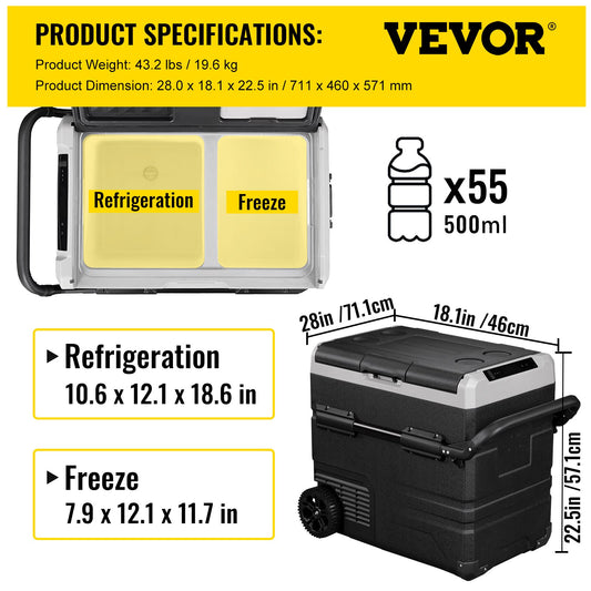 VEVOR 45L 55L 75L 95L Car Refrigerator Portable Compressor Freezer Fridge Dual