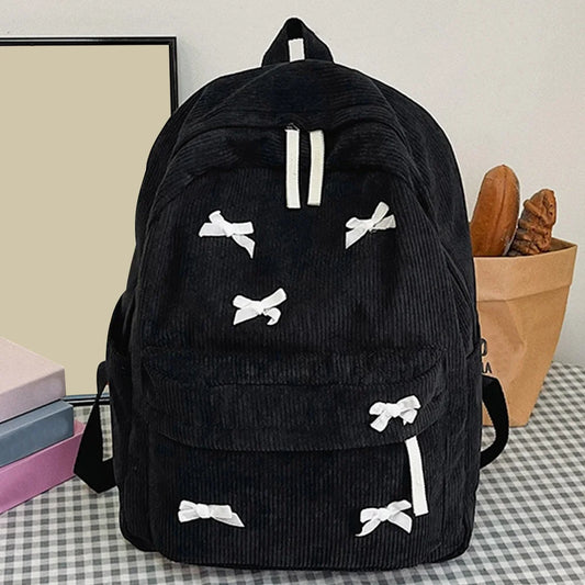 Women Corduroy Bookbag Multi Pocket Casual Daypack Adjustable Strap Laptop Backpack Rucksack for Work Travel