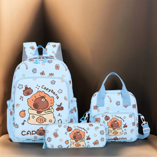 3Pcs Cute Backpack with Pencil Case & Shoulder Bag Stylish Capybara Rucksack Large Capacity Casual Nylon Bookbag Travel Backpack