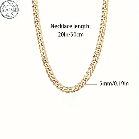 18K Gold Plated 5mm Curb Cuban Link Chain Necklace High Polished 925 Sterling S