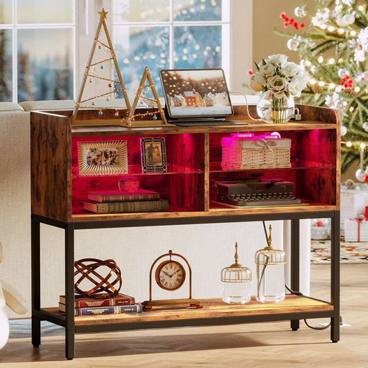 Entryway Table with Power Strip, Farmhouse Console Table Sofa Table with Storag