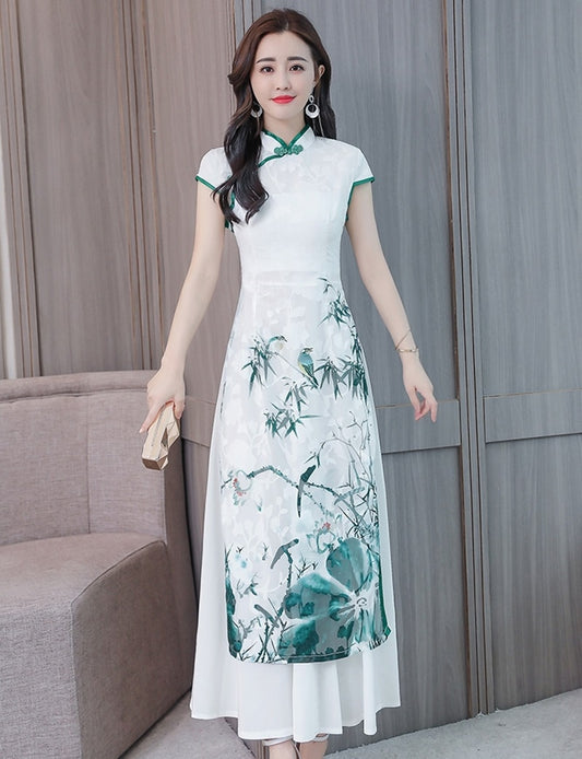 2024 traditional qipao dress cheongsam aodai vietnam aodai dress+pants set vint