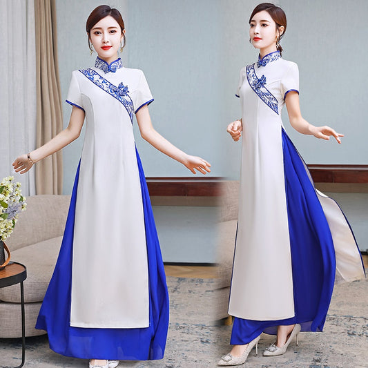 Ao Dai Dress 2020 Summer New Vietnam Dress Women Elegant Cheongsam Folk Chinese