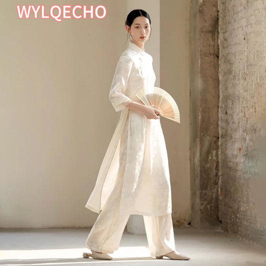 Ao Dai Dress Retro Long Cheongsam Dress large-size Art Retro Ao Dai Dress Women