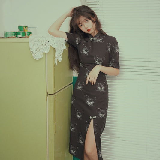 Classic Women Qipao Elegant Flower Print Cheongsam Cute Evening Party Dress Chinese Short Sleeve Vestidos
