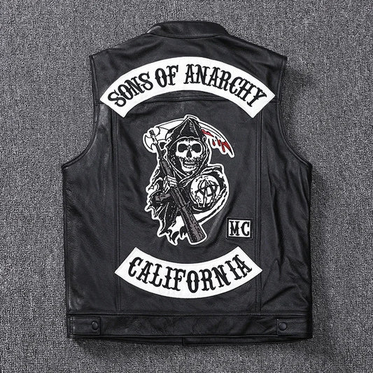 Fashion 100% Cowskin Sons Of Anarchy Leather Rock Punk Vest Cosplay Costume Bla