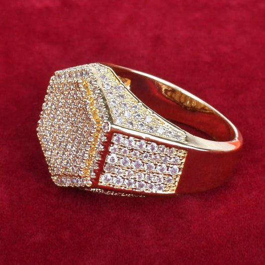 Gold Color Men's Ring 18 K Copper Charm AAA Cubic Zircon Fashion Hip Hop Jewelry