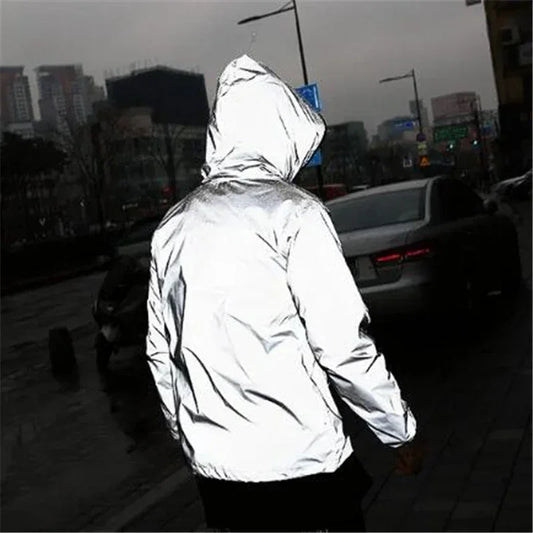 Plus Size 5XL Men's Full Reflective Windbreaker Waterproof Jacket Spring Autumn Hip Hop Streetwear Hooded Loose Coats Male