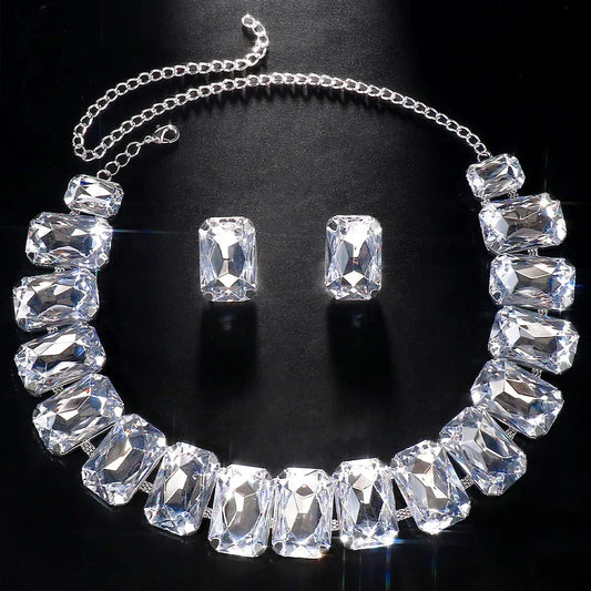 Stonefans Geometric Necklace and Earrings Set for Womeng Wedding Luxury Trend Bridal Decoration 2024 Party Jewelry Accessories