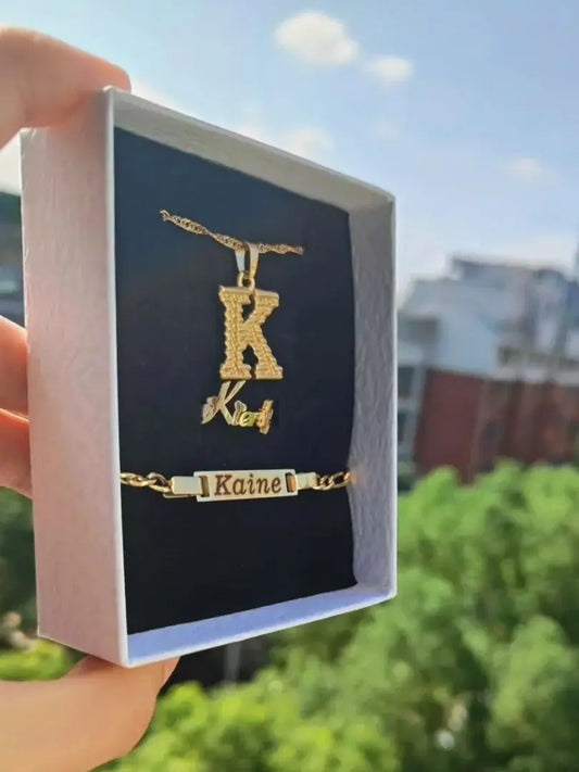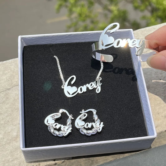 DUOYING Custom Name Jewelry Set Personalized Letter Necklace Customized Name Bangles Stainless Steel Mini Hoop Earrings 18mm