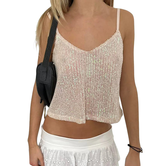 European and American ladies sequin summer light mature Gorgeous romance, date, music festival, party, V-neck vest