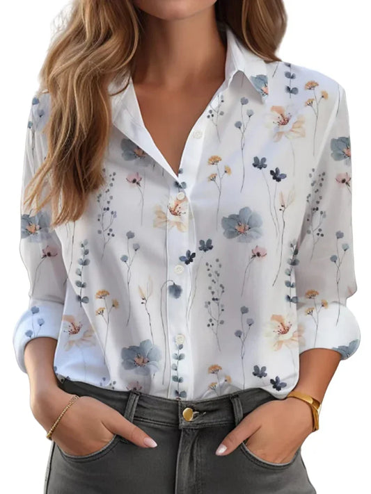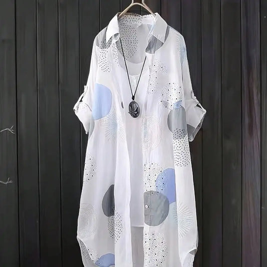 Plus Size Women New Loose Shirts Fashion Long Sleeve Shirt Elegant Face Print Sexy Blouse Spring Retro Button Top Summer Clothes