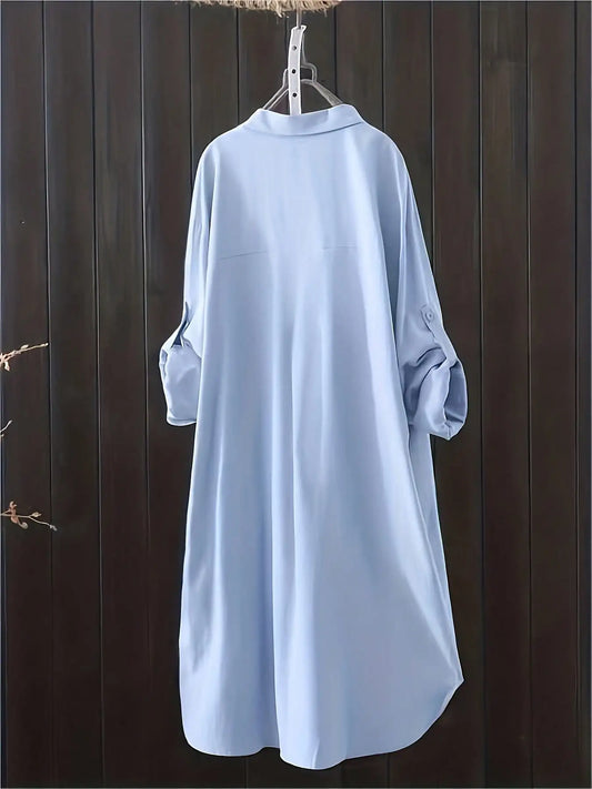 Casual Loose Oversized Shirt Linen Solid Long Shirts Korean Fashion Midi Blouses Women's Clothing Plus Size Tops