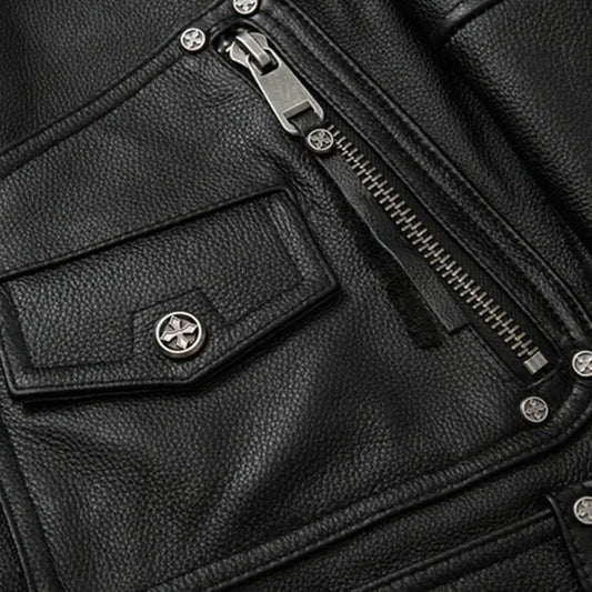 • 2024  Indian Embroidery Genuine Leather Jacket Men's Cowhide Motorcycle Jackets image 0
