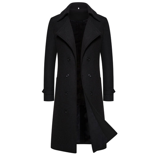 Spring Long Woolen Coats Men Fashion Double Breasted Trench Coats Autumn Turn D