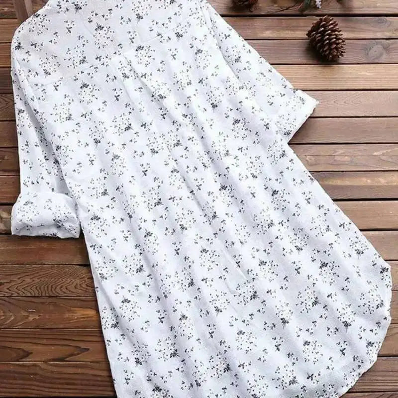 2025 New Plus Size Women's Stand Collar Loose Fit Casual Shirt European Spring Style Long Sleeve Floral Print Blouse