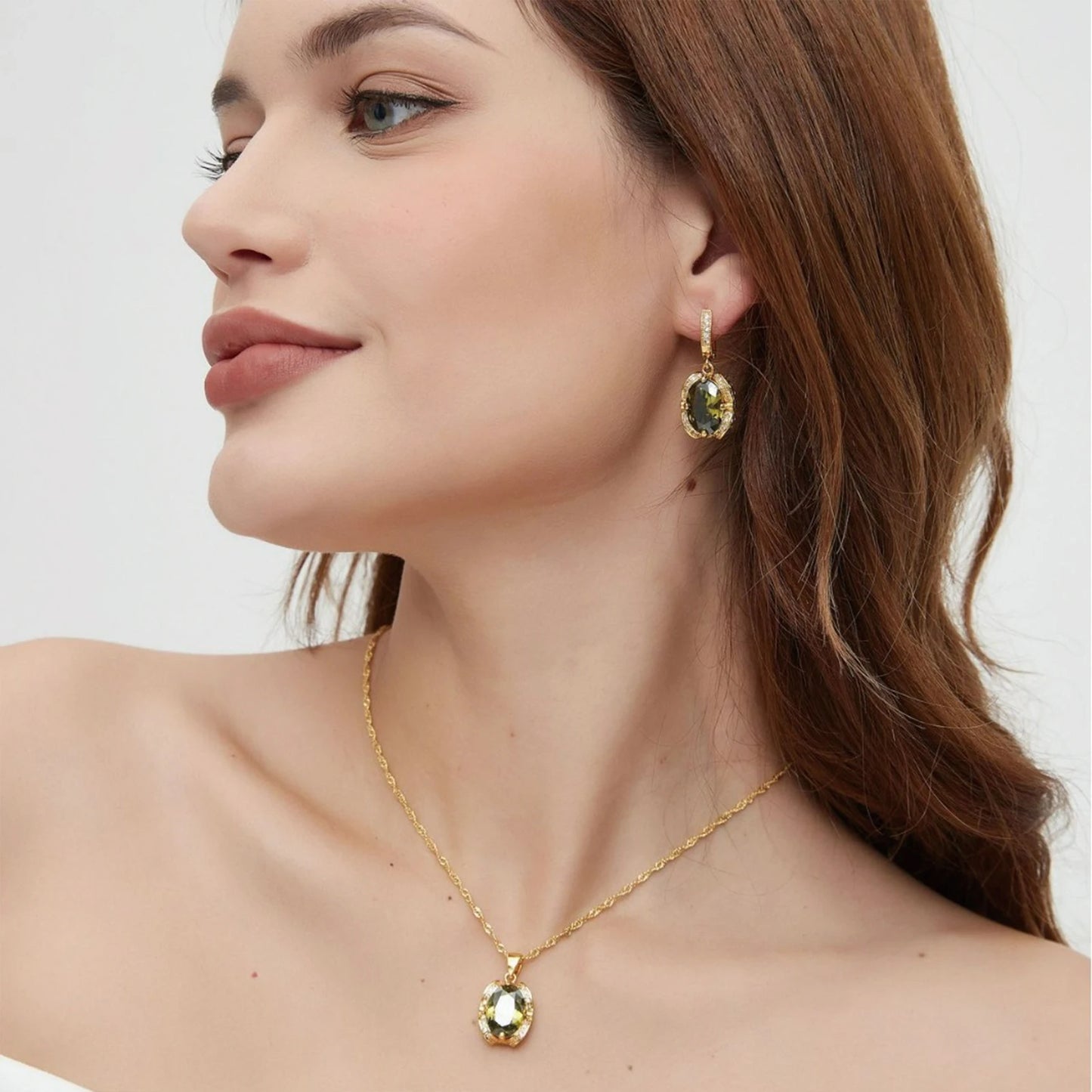 925 Silver, Dark Green Moissanite Jewellery Set, Exquisite Luxury Elegant Romantic Fashion, Wedding, Anniversary, Birthday, Vale