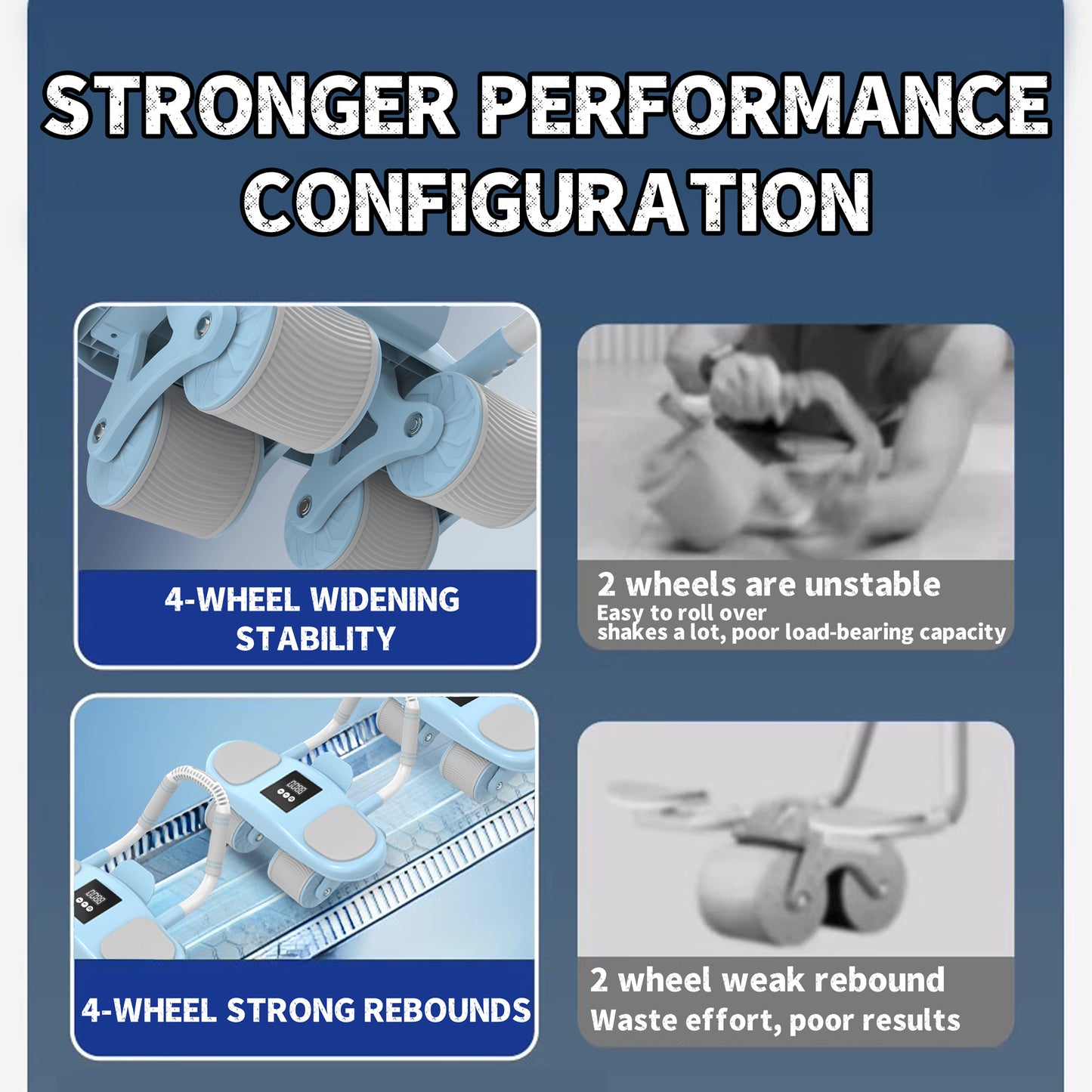 Automatic rebound abdominal roller with elbow support, knee pads and abdominal