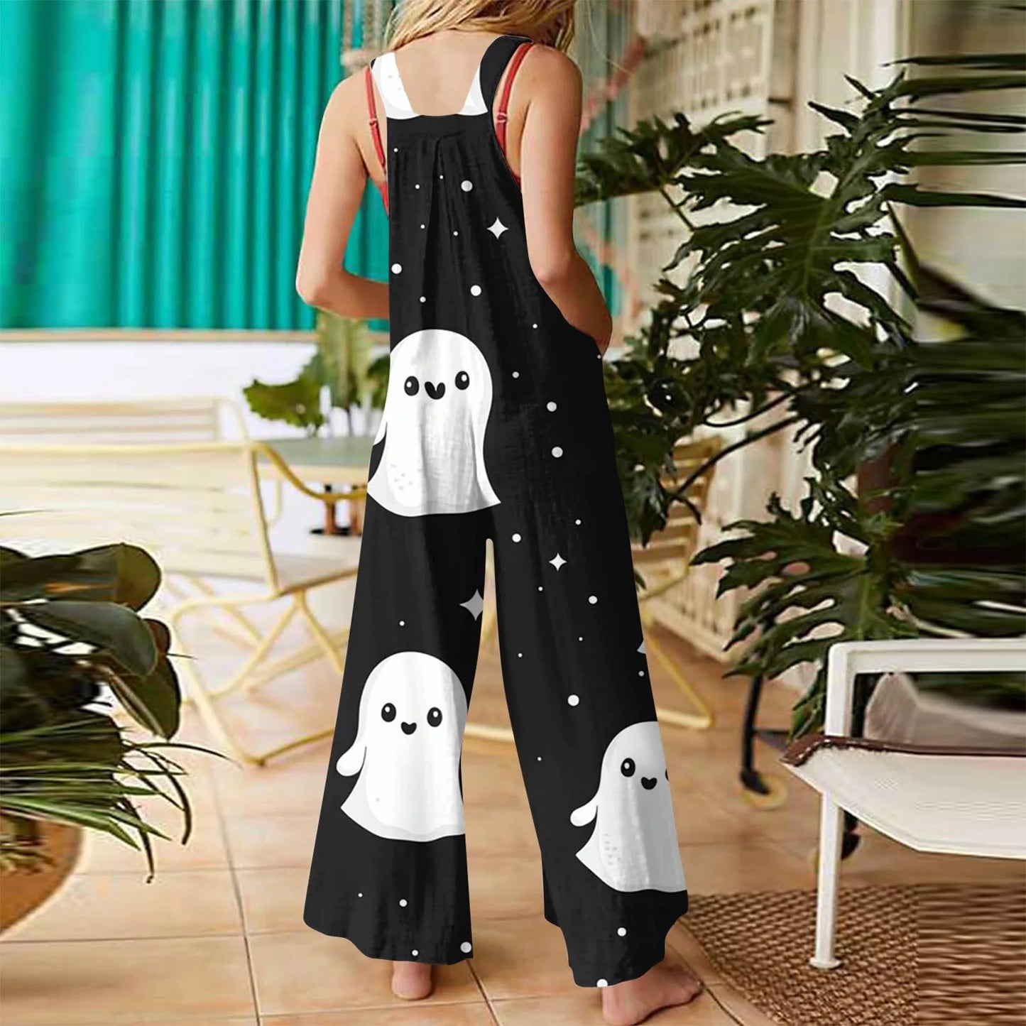 Cargo Pants Women Pantalones De Mujer Y2k Clothes Women'S Fashion Halloween Print Casual Vintage Sleeveless Button Jumpsuit