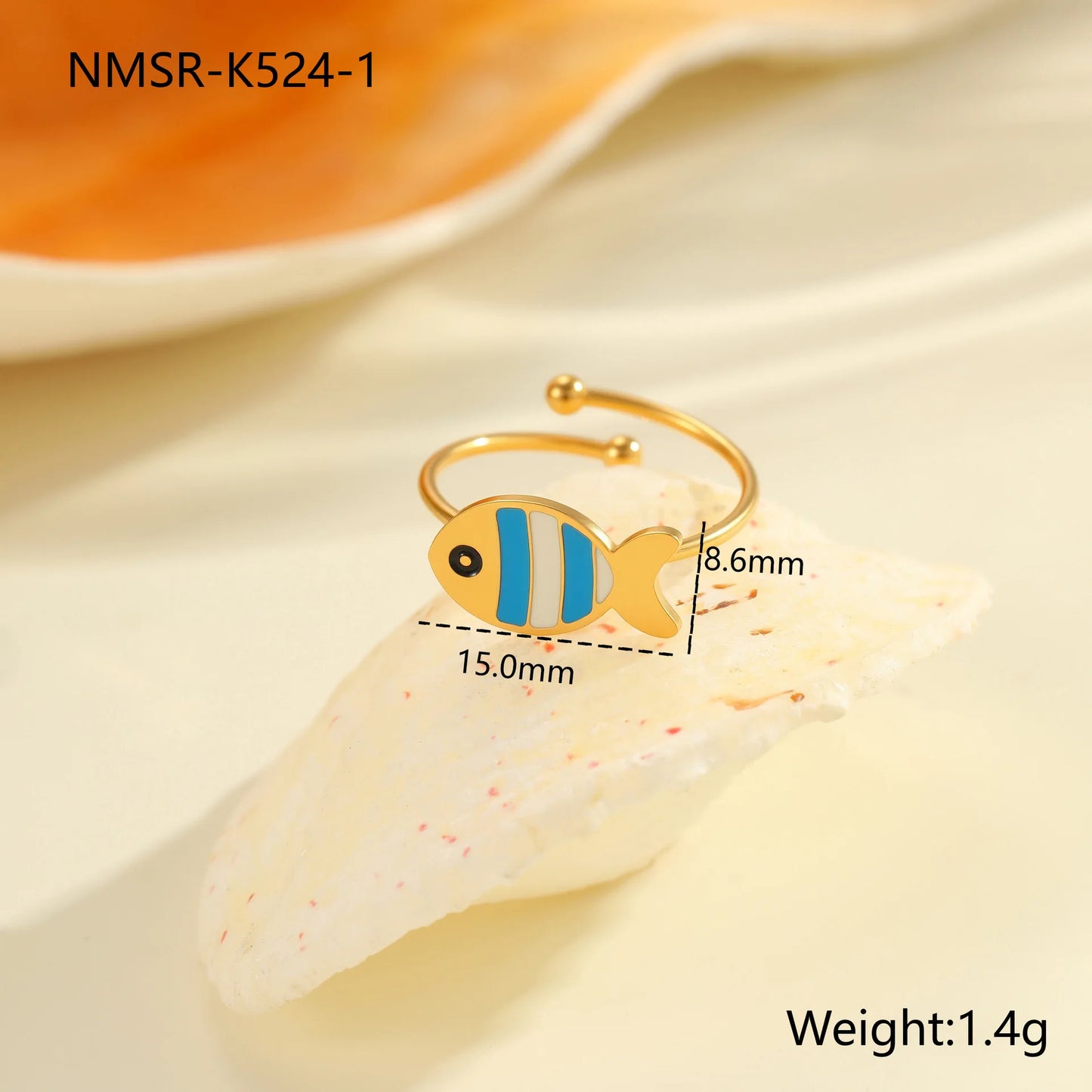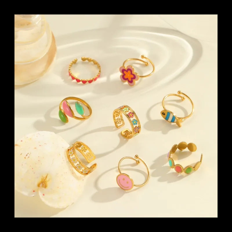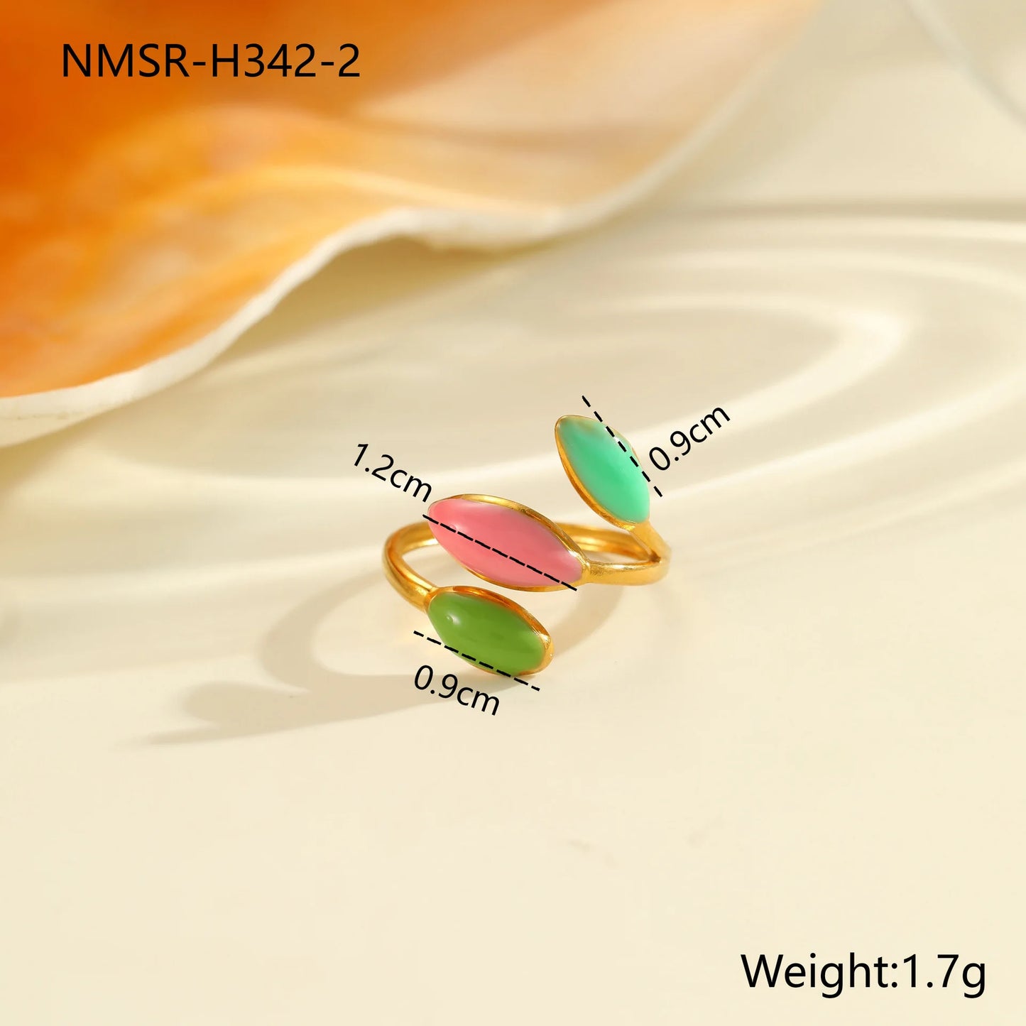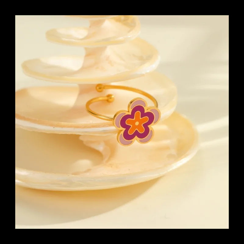 Colored Flower Oil Drip Stainless Steel Ring Gold Plated Fashion Versatile Cute Open Ring Ring