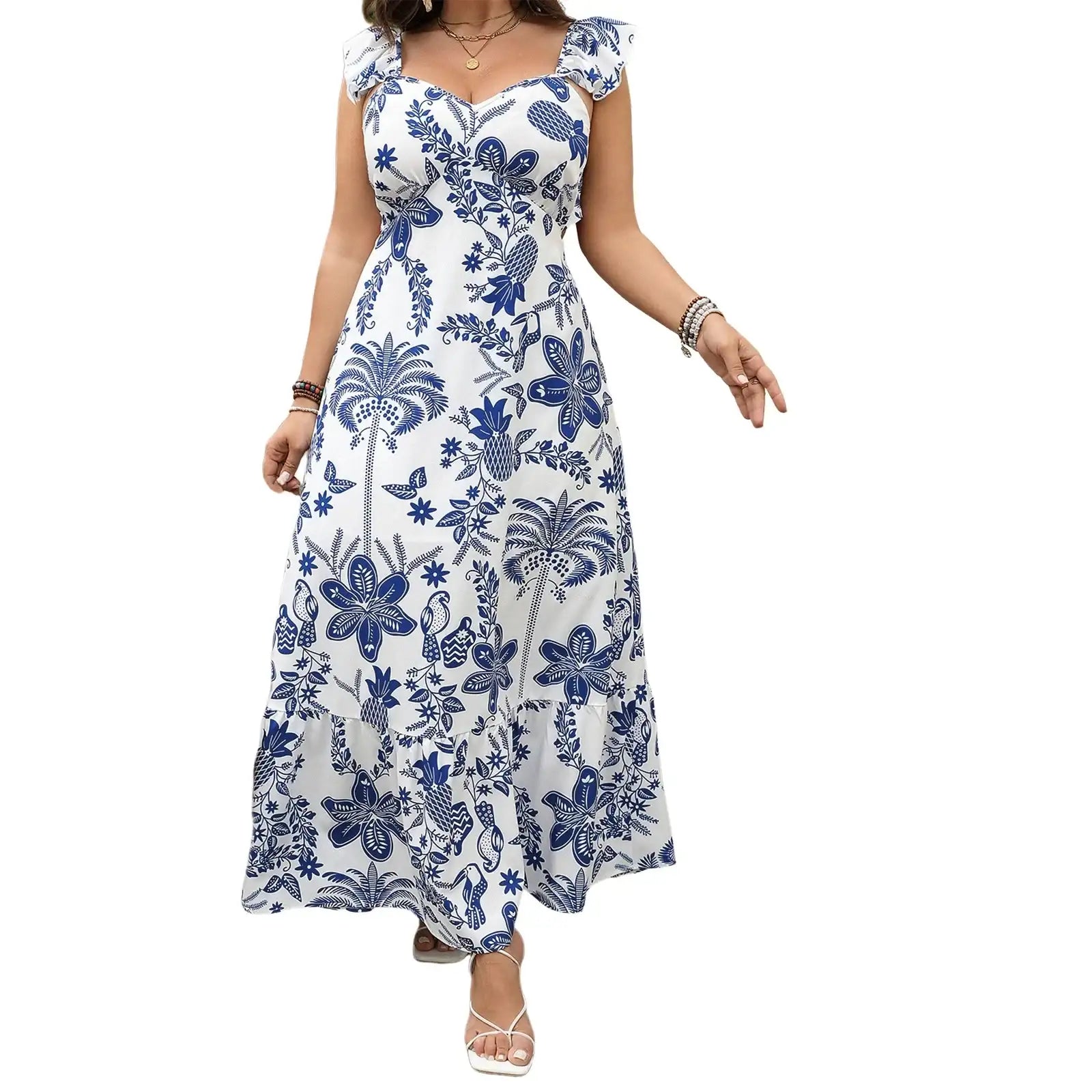 Elegant Women s Summer Dress with Floral Print V Neckline Sleeveless Design and Backless Detail in Plus Size A-Line