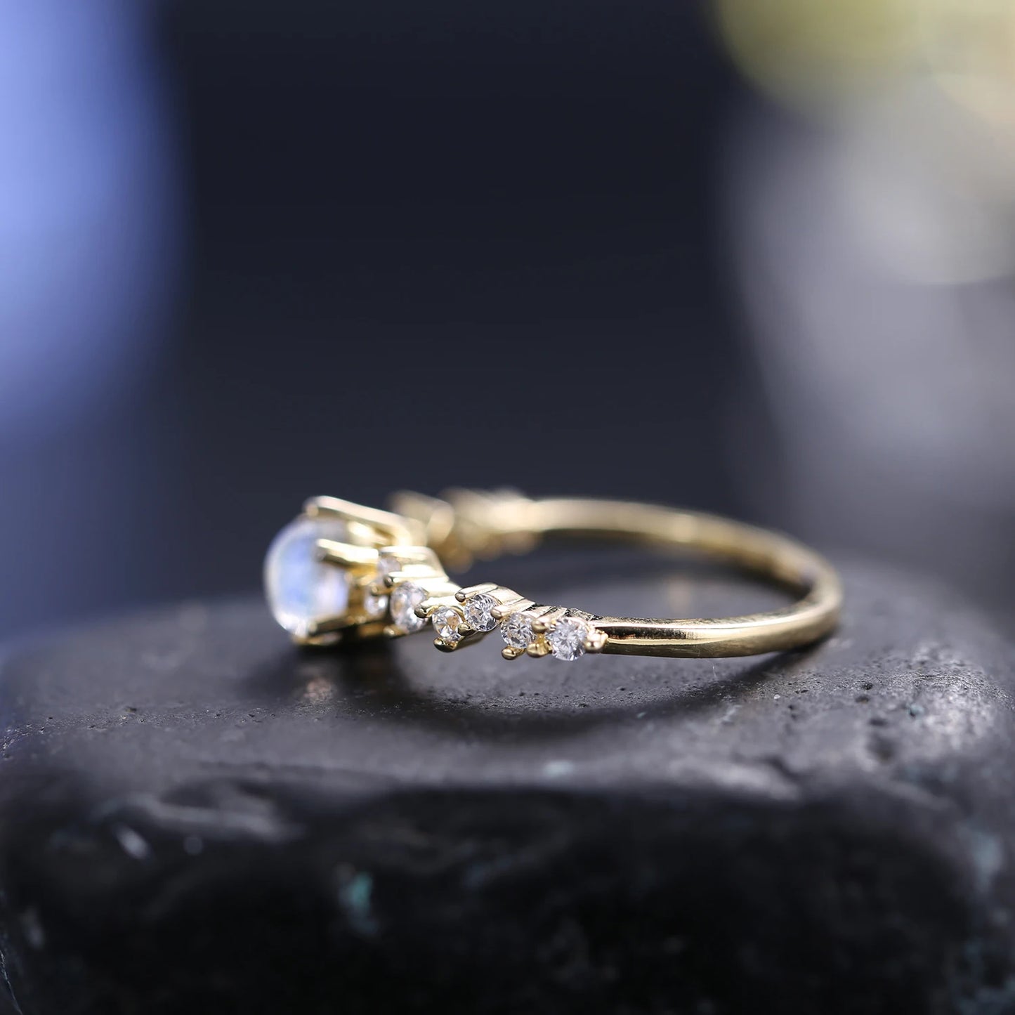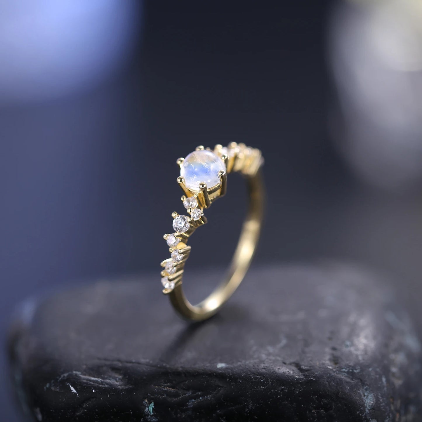 GEM'S BALLET 925 Sterling Silver Promise Gold Ring June Birthstone Natural Rainbow Moonstone Engagement Rings Gift For Her