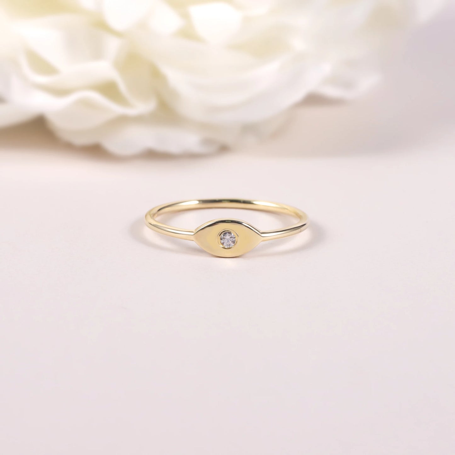 GEM'S BALLET 925 Sterling Silver Round Moissanite Evil Eye Wedding Band Ring Minimalist Stackable Gold Ring Gift For Her